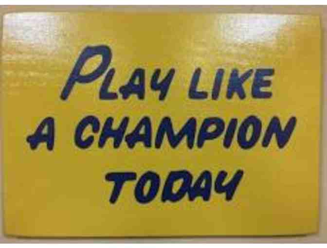 Autographed "Play Like a Champion Today" Sign by Brian Kelly, Notre Dame Head Football Coach
