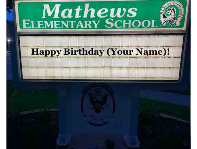 Celebrate your student's Birthday all month long by displaying their name on the Mathews School marqee!