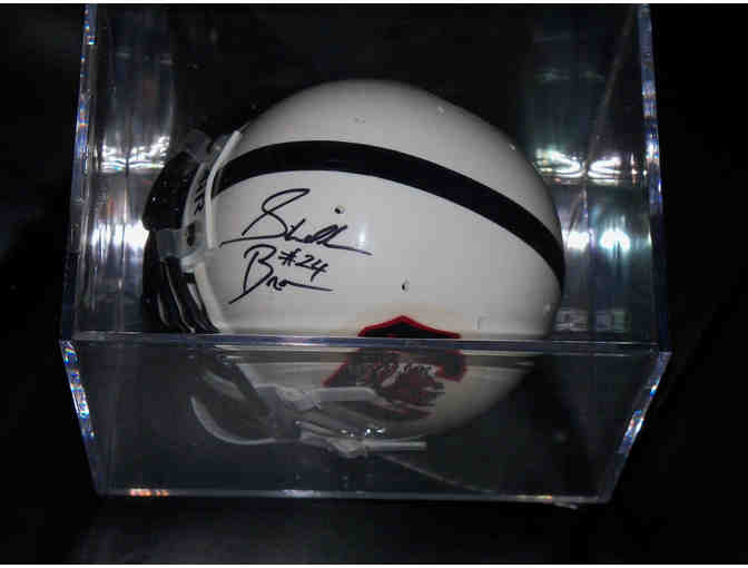 This is a great signed South Carolina mini helmet by RB Sheldon Brown. It includes the display case as well.