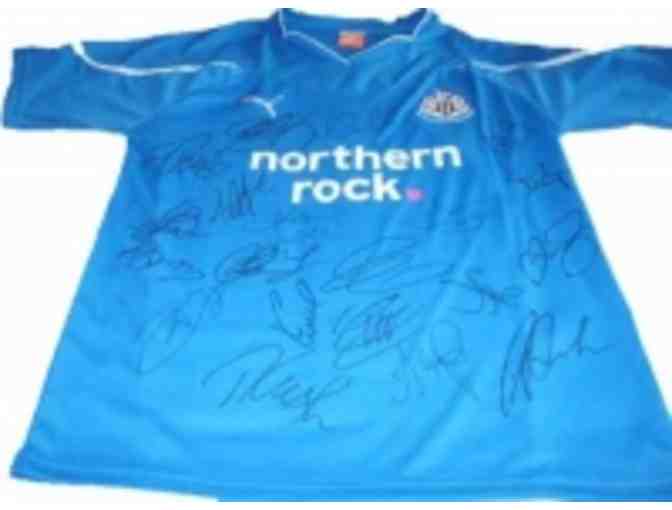 Newcastle Team Autographed Soccer Jersey. Comes with certificate of authenticity.