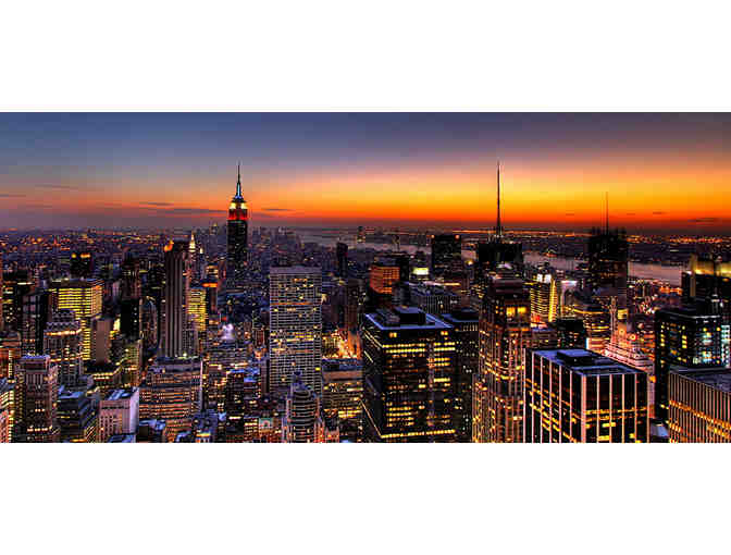 This package includes round-trip coach class service for two from any major metropolitan airport in the 48 contiguous United States to New York, subject to availability.