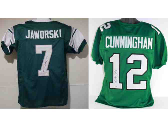 The winning bidder selects the hand signed, authentic jersey from the legend of their choice: Ron Jaworski or Randall Cunningham.