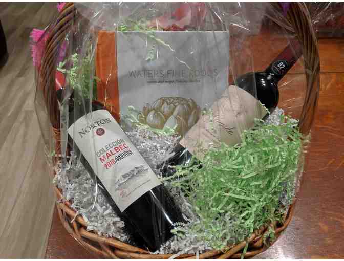 A Waters Catering Cook Book, $50 Waters Gift Card and 2 bottles of wine.