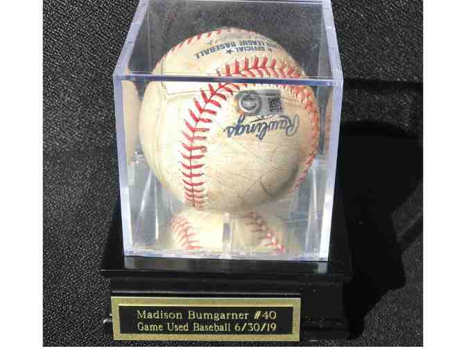 Although Mad Bum is no longer in our dugout, his memories and legacy will always be as a San Francisco Giant! Own a piece of history by bidding on this game used “strikeout swinging” baseball, pitched by four-time All-Star and 2014 World Series MVP Madison Bumgarner at the top of the 7th inning against the Arizona Diamondbacks on 6/30/19.