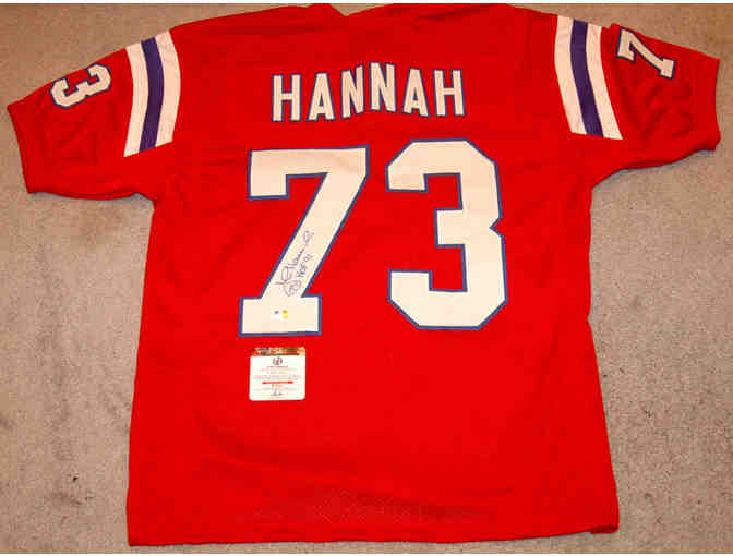 John Hannah New England Patriots Autographed Football Jersey. Comes with certificate of authenticity.