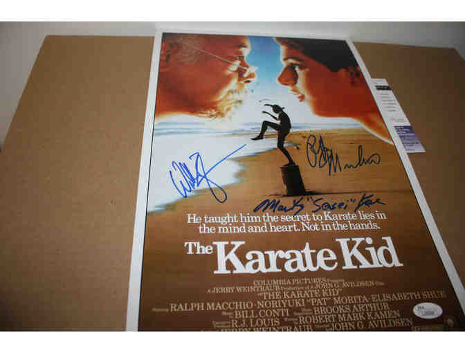 THE KARATE KID 11X17 MOVIE POSTER SIGNED BY ZABKA, KOVE & RALPH MACCHIO