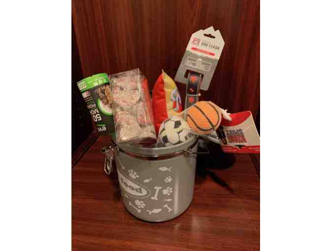 Do you have a furry friend at home you love to spoil? This basket was made for you! All packed inside a food or treat container, you'll find a leash, brush, three bags of treats, toys, and more!