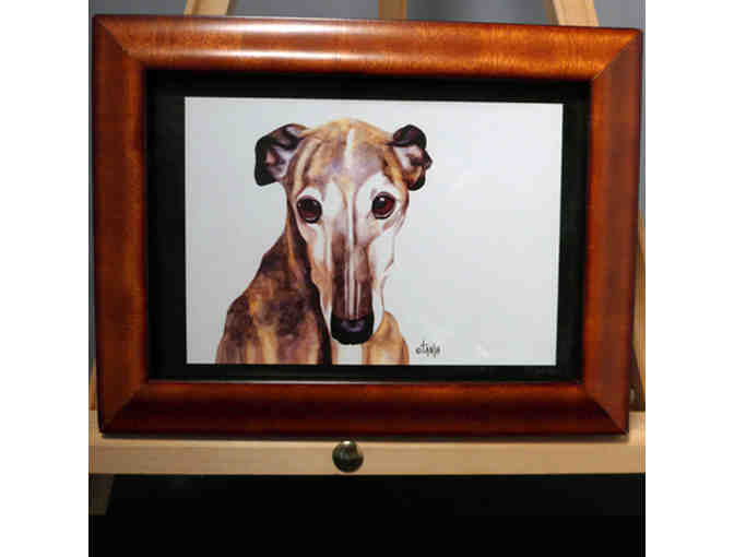 An art print taken from her original watercolor of a senior Galga Español, Janish.