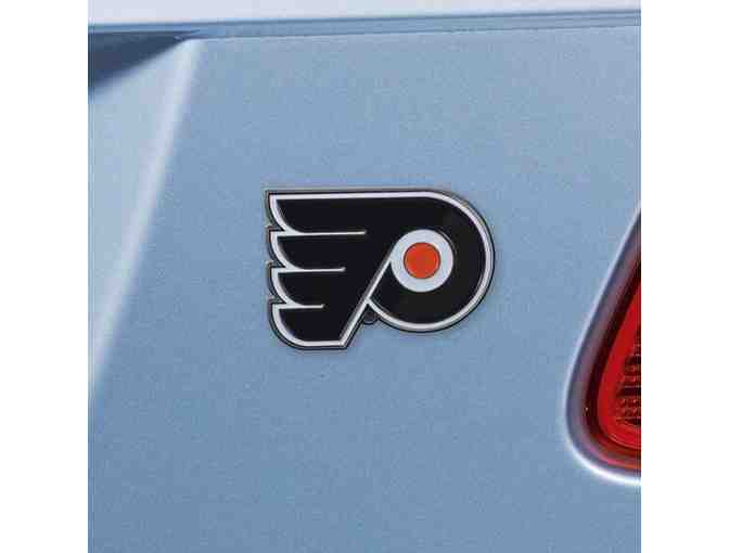 Bring your team on the road with you by featuring a Color Emblem from Sports Licensing Solutions! The 3D Emblem is constructed from metal and then plated with the Flyers' team true colors, making sure these emblems are sure to really pop. The Enamel color plating helps the emblem resist the elements in any weather conditions, but to keep the colors bright just apply standard vehicle wax. With adhesive already applied to the back all you have to do is pick the spot you want the Emblem and place. The Emblem is also a great way to mark your laptop, golf cart, mailboxes, and much more.