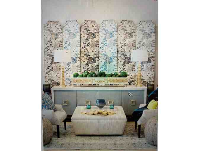 Add style to your home with this alluring pair of 3 panel Century Screens, upholstered in blue and white toile with sculpted top and nailhead trim by a b o d e!