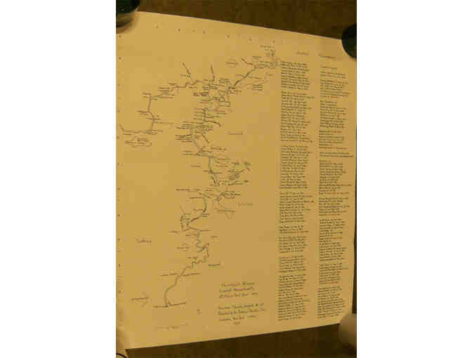 Thoreau's Rivers (poster) by Mary Gail Fenn, 1973. Thoreau Society Booklet #27. Measures 27 x 22 inches. Hand-drawn map of the Sudbury, Assabet, and Concord Rivers, complete with identifying names as Henry David Thoreau called them. Complete with an alphabetical index of the names, with journal citations. In perfect condition and not aged at all. (Photo is darker than paper is in real life.) A collector's item now.
