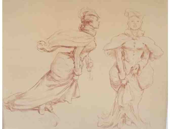 The figurehead drawing is of the wife of Captain Bligh by an MGM artist used for the carving of the figurehead on the actual ship. This print is one of only two known with the second belonging to Captain John Rumsey, former captain of the Bouty. The original of the print is in the MGM archives.