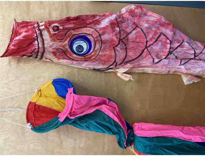 A Pair (2) of Colorful Old Children's Day Koi Flags, Koinobori