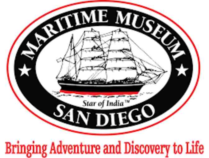 (4) Tickets to the Maritime Museum San Diego. Located along the San Diego Embarcadero, on the Star of the India Wharf at North Harbor Drive and Ash Street.