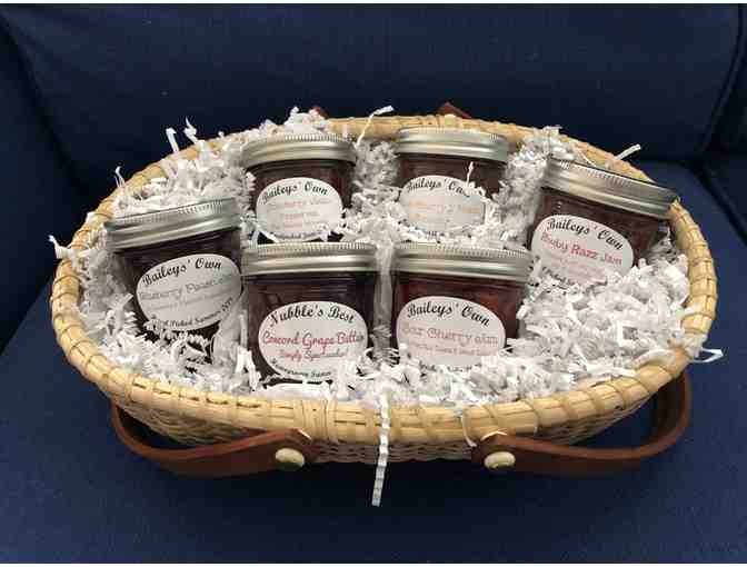 This beautiful basket of homemade jam will bring you the taste of Summer on the Seacoast. These 6 handcrafted, low sugar jams were made by a BA Family who hand picked every berry, cherry, peach, grape and apple at local farms during the growing season and incorporated them into this amazing collection!