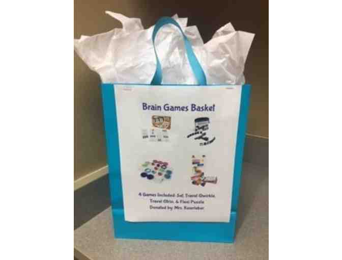 Enjoy challenging your brain with some fun "Brain Games" Games included in the gift basket are: Set, Travel Qwirkle, Travel Otrio, and a Flexi Puzzle.