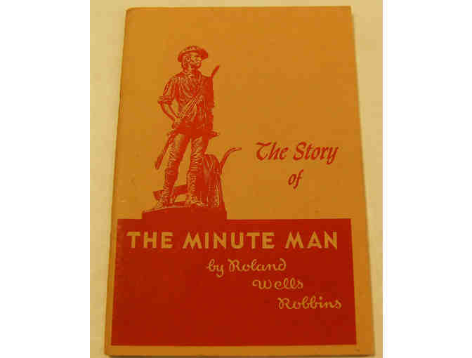 The Story of the Minute Man, by Roland Wells Robbins. The Country Press, 1945. 2nd printing, 1967. 30 pp. Tan pamphlet with red illustration on cover. This copy is WARMLY INSCRIBED by Roland Wells Robbins on the title page. With 9 illustrations, mostly photographed. Tells the story of the fight at the North Bridge and of Daniel Chester French's statue.