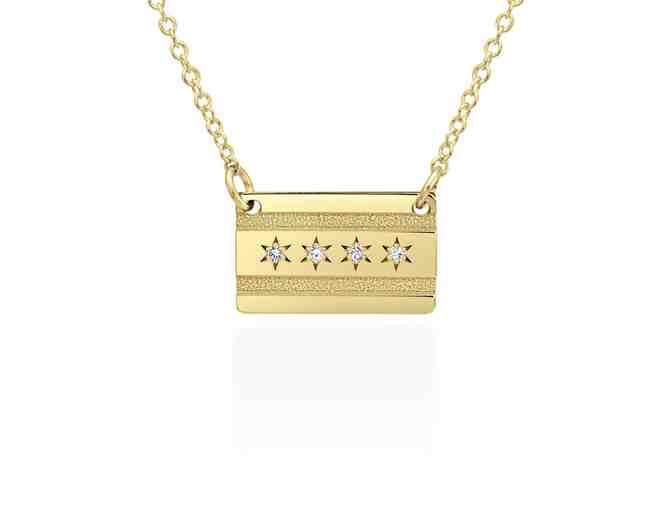 Genuine 10K Yellow Gold & Diamond Chicago Flag Necklace