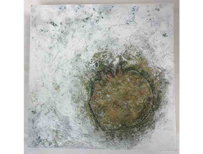 This painting measures 8"x 8" and is acrylic, gold leaf and graphite on panel.