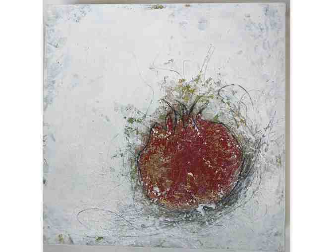 This painting measures 8"x 8" and is acrylic, gold leaf and graphite on panel.