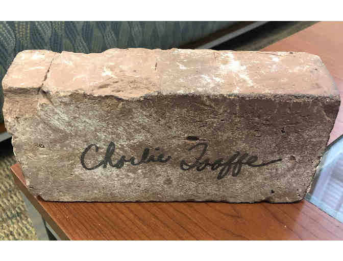 This brick is a pricelss piece from the old Johnson Hagood Stadium signed by Coach Charlie Taaffe.