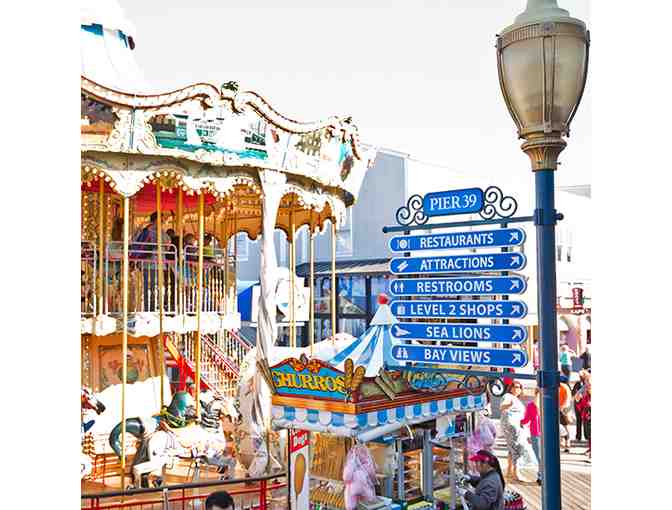Play at the bay! Enjoy a fun-filled outing to Pier 39, the premiere entertainment destination at San Francisco's waterfront. Package includes two tickets for Blue & Gold Fleet Bay Cruise Adventure, Carousel Ride, 7D Experience, and Aquarium of the Bay, plus one Pier Passport to Savings with coupon for one-hour parking validation at Pier 39's parking garage.