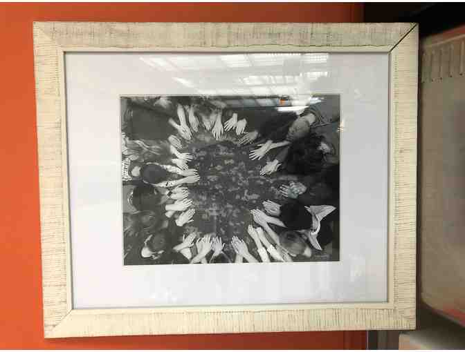 Photograph with students hands/arms in the shape of a heart