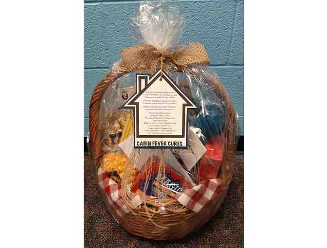 Cabin Fever Cures Basket donated by the PHS Bowling teams consists of a Northern Lights Recreations pass for 1 hour of bowling, 6 shoe rentals, 1 large pepperoni pizza w/pitcher of soda. Also a $20 Kilwins gift card, Wonderland Match game, Stickman Match game, 2 decks of cards, Tenzi Dice game, Magic Trick box, 1 bag of caramel corn, 1 bag of cheese corn, 1-2xl PHS bowling t-shirt and a xl PHS bowling sweatshirt