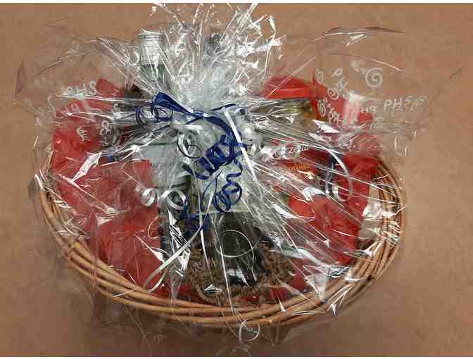 Martini Basket donated by Karen Starkey and Rosanne Schaub consists of 2 PHS Martini glasses and all the fixings for Martinis