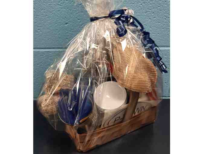 Donated by PHS Volleyball, this basket contains p-town stickers, hand-made mittens by Danielle Donovan, a Michigan coffee mug w/hot cocoa, a Beard's Brewery ball cap, t-shirt, glass and coozie