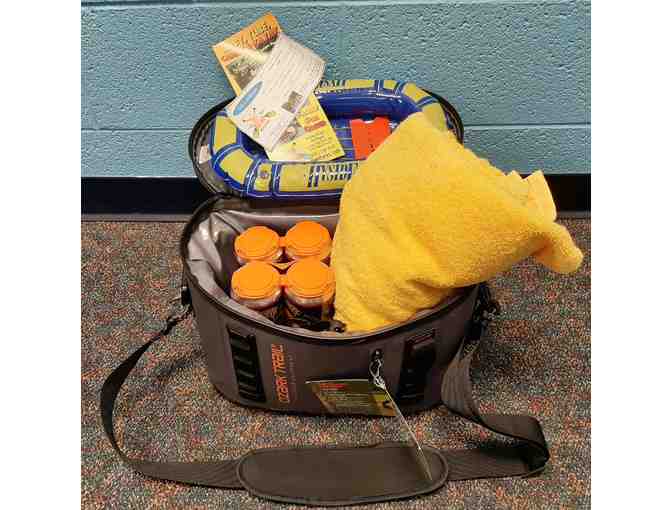 Donated by PHS Girls Soccer, this Ozark 12-can cooler consists of a coupon for a Big Bear rafting trip for 5, a $30 Vivio's gift card, 4-pack of Cheboygan Brewing beer a beach towel and sunglasses