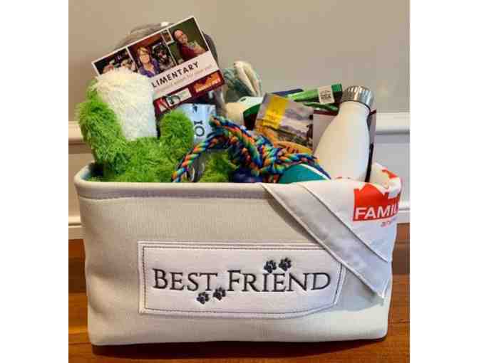 Does your pet need a check up?  Bring them to Family Pet Animal Hospital for a comprehensive physical exam. Your pooch is looking for some treats before he goes so enjoy this beautiful gift basket.  Contents include: