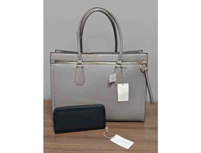 This package includes A New Day large rose taupe satchel handbag and black zippered clutch wallet