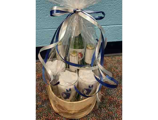 4 Northmen Beer Glasses w/Stella Artois Beer in a round basket