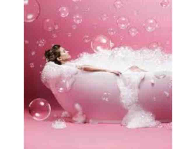 This package includes (1) Crabtree & Evelyn Rosewater Lotion, (1) Philosophy White Pear Body Wash, (1) Back Bath Scrubber, (1) Spak Makeup Remover, (1) Makeup Brush Set, (1) Calla Callus Remover, (1) Mint & Eucalyptus Bath Soak, (1) Essential Oils Facial Scrub, (1) Lavender & Sage Foot Creme, (1) Bunny Ear Headband, (1) Cadbury Royal Dark Chocolate.