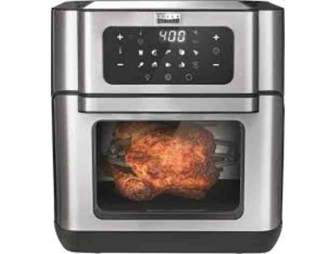 This package includes (1) Bella Pro Series 10.5 quart Air Fryer dehydrator oven with rotisserie and (1) $100 Noon knife sharpening gift certificate.