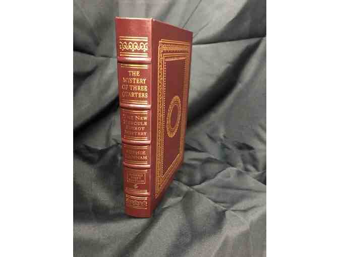 Beautifully leather bound, signed 1st edition book, "The Mystery of Three Quarters - The New Hercule Poirot Mystery", by Sophie Hannah. This book is an authorized installment of Dame Agatha Christie's legendary Hercule Poirot series, where the world's most beloved detective must solve a diabolically clever mystery set in the London of 1930.