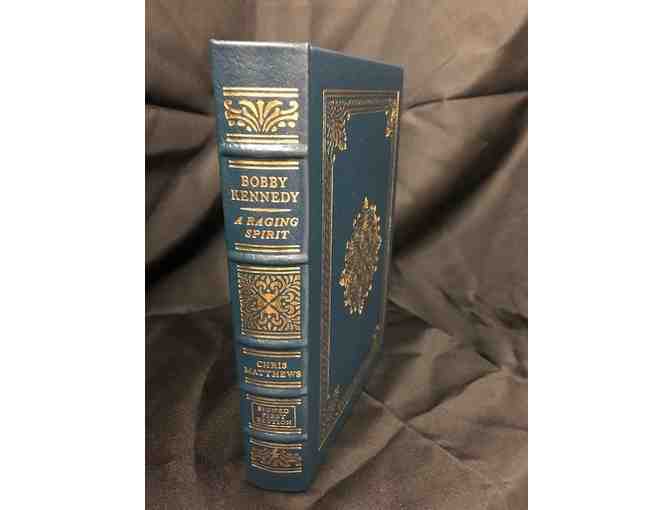 Beautifully leather bound, signed 1st edition book, "Bobby Kennedy - A Raging Spirit" - one doesn't just read the words, but experiences the tension and emotions....The depth of Bobby Kennedy: A Raging Spirit provides insight into this man's spirit and what drove him to greatness. Matthews does an excellent job of pulling Bobby out from behind any family shadows to give us an in-depth portrait of what could have been."