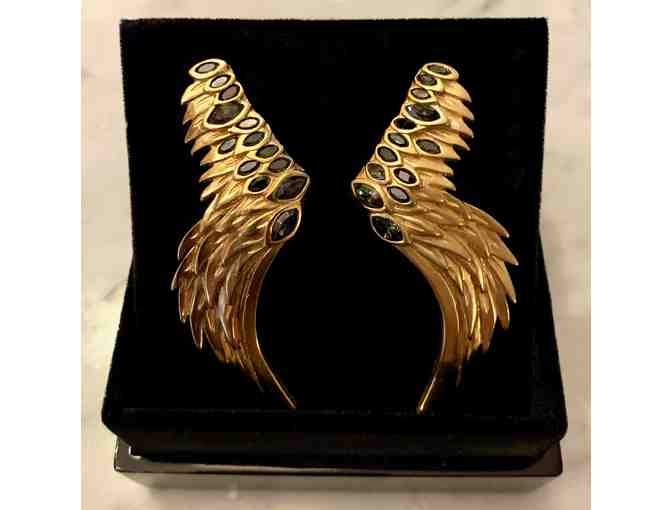 Colette Malouf 14K Gold plated Raven Wing Earrings with True Swarovski crystals cascading along the gold wings. A stars favorite and line featured in Paris Vogue - no longer being made and collectible. These earrings are on trend, spread your wings and fly into luxurious jewelry handcrafted in Soho NYC design studio.