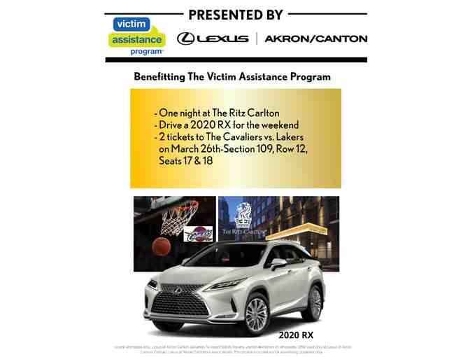 Spend a luxury weekend in Cleveland! Your weekend starts with a weekend rental of a brand new 2020 Lexus RX from Lexus Akron Canton. Drive yourself in luxury to Cleveland to take in a Cavs game. But not just any Cavs game, you will be seated in section 109 for the Cavs vs Lakers game! Section 109 is directly behind the Lakers bench and hometown hero LeBron James! Then complete your weekend with an overnight at the 4-Star Ritz-Carlton, located within Cleveland's Tower City Center. A weekend in Cleveland doesn't get much better than this!
