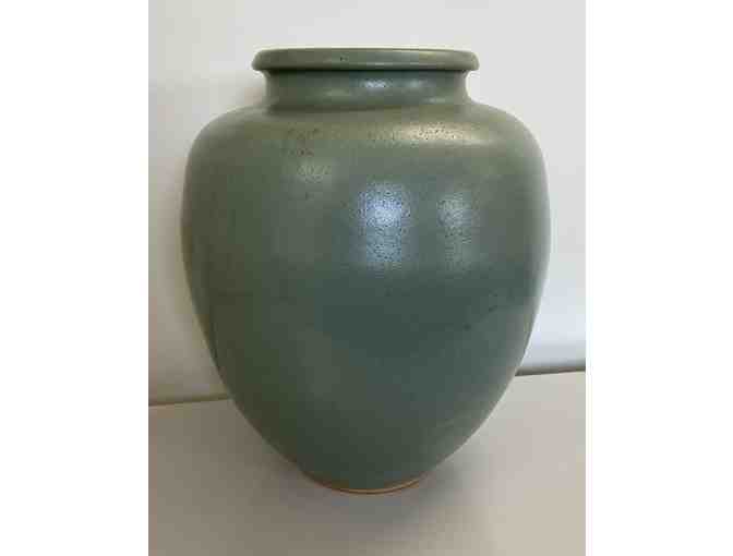 Early contemporary handmade hand glazed green classic vase.