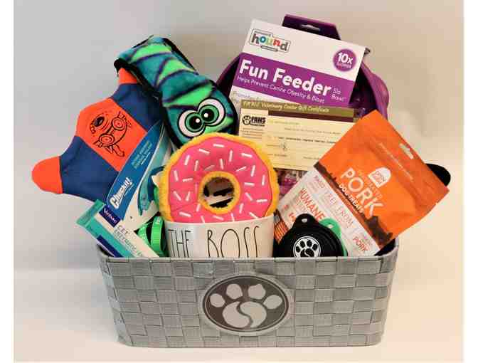 PAWS Veterinary Center put together this amazing basket for your dog. Take a look at everything it includes.