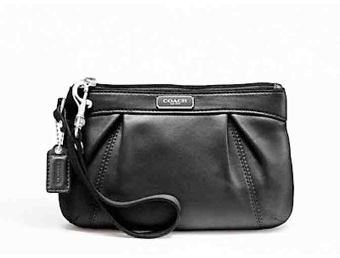 Bid to win a Coach Black Leather Pleated Medium Wristlet.