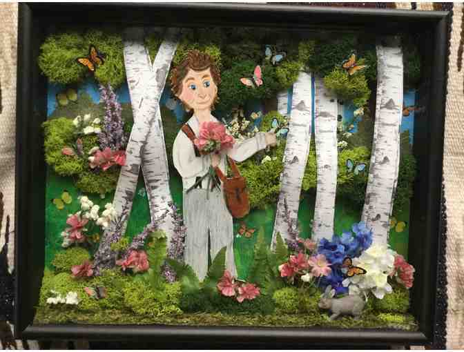 11 x 14 black shadow box of a young Henry sauntering through the summer woods; created by author/illustrator Donna Marie Przybojewski, author of Henry David Thoreau Love the Seasons of the Year."