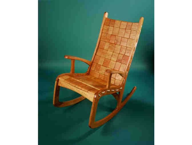 Handcrafted solid hardwood cherry rocking chair. The Vermont Folk Rocker’s seat and back conform to your body allowing you to relax in exquisite comfort. The rocker provides a gentle, even movement, which gives you a secure feeling as you rock back. Each chair is constructed with heirloom quality and signed and dated by the designer, Jim Geier.