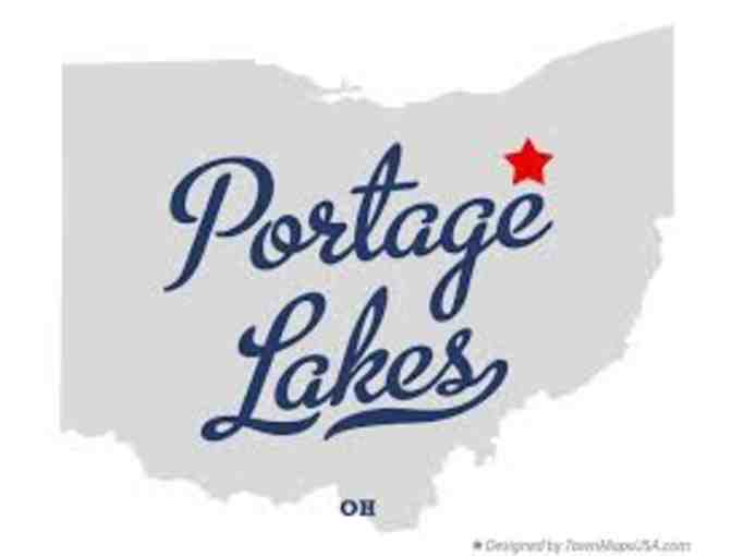 Enjoy that Lake Life with this collection featuring the best from Portage Lakes. This package includes: (1) $25 gift card for The Upper Deck Lounge; (1) $25 gift certificate for Pav's Creamery Portage Lakes; (1) $35 gift card for Lala's in the Lakes restaurant; (1) gift certificate for a 4-hour kayak rental with Killin'It Kayaks; a photo print of the Portage Lakes clock tower from photographer Michael Obrycki; a 17-oz. Barista Tumbler featuring a map of the Portage Lakes; a PLX magnet; (2) stickers from Shriner Marine; and (1) Shriner Marine t-shirt (size XXL).