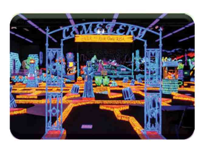Enjoy four passes to play 18 holes of indoor, glow-in-the-dark monster themed mini golf at Monster Mini Golf!