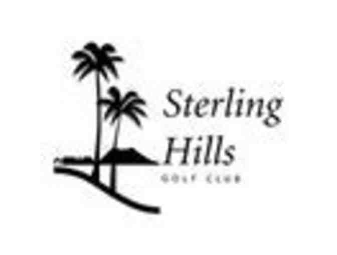 This is for a round of gold and cart for four (4) at Sterling Hills Golf Club located in Camarillo, CA. Includes meal, cart, and warm up range balls.