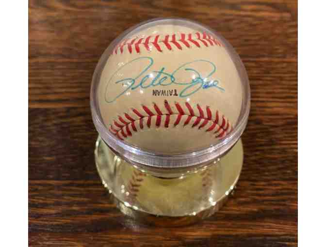 You are bidding on a signed ball from the Hit King himself! Rose was a switch hitter and is the all-time MLB leader in hits (4,256), games played (3,562), at-bats (14,053), singles (3,215), and outs (10,328).[1] He won three World Series rings, three batting titles, one Most Valuable Player Award, two Gold Gloves, and the Rookie of the Year Award, and also made 17 All-Star appearances at an unequaled five positions (second baseman, left fielder, right fielder, third baseman, and first baseman). Rose won both of his Gold Gloves when he was an outfielder, in 1969 and 1970.