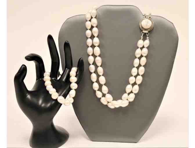 This auction item includes a freshwater pearl necklace and bracelet set.